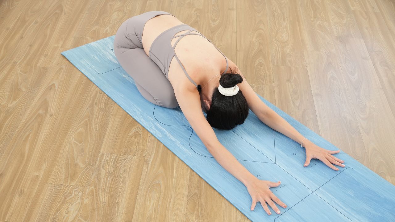 跪坐於墊上,身體前傾,額頭貼地。雙手可前伸或自然放於身側。在這片柔軟墊面上,讓呼吸漸漸平緩,感受完全放鬆的片刻。Tumaz 天然橡膠墊柔韌觸感,包覆每一次歸於靜心的深呼吸。