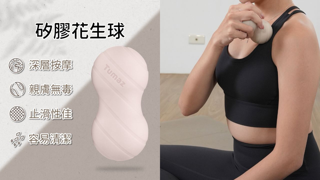 錐形的設計會比一般圓形花生球更容易「找到痛點」,對長期肩頸僵硬的人效果尤其明顯。