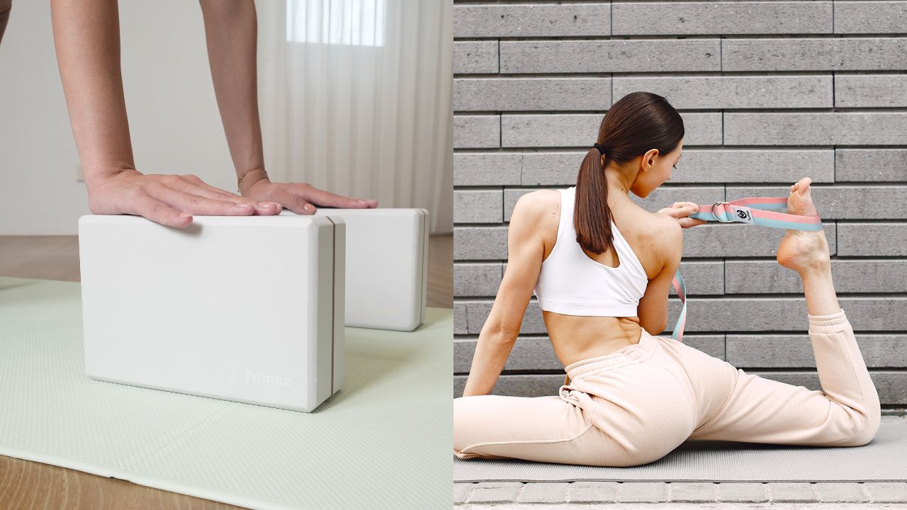 居家瑜珈練習的最佳輔具!Tumaz月熊高密度瑜珈磚與伸展帶組合