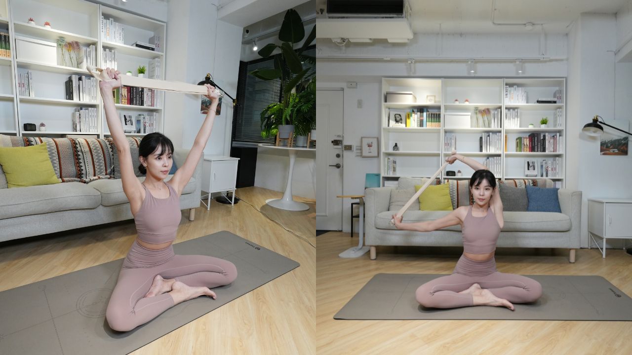 核心與背部伸展:坐姿或仰臥,利用伸展帶控制拉力,達到背部肌群深層放鬆。