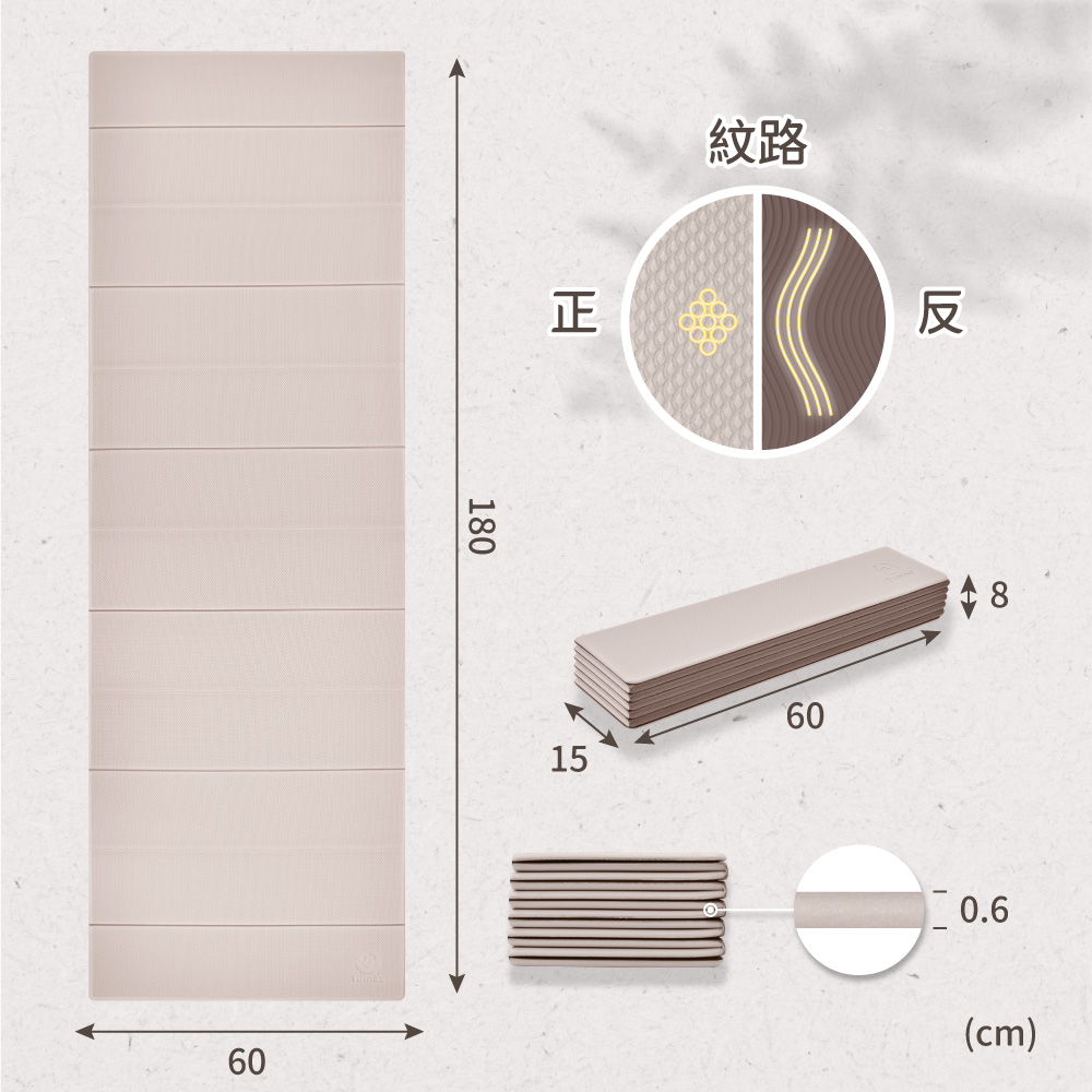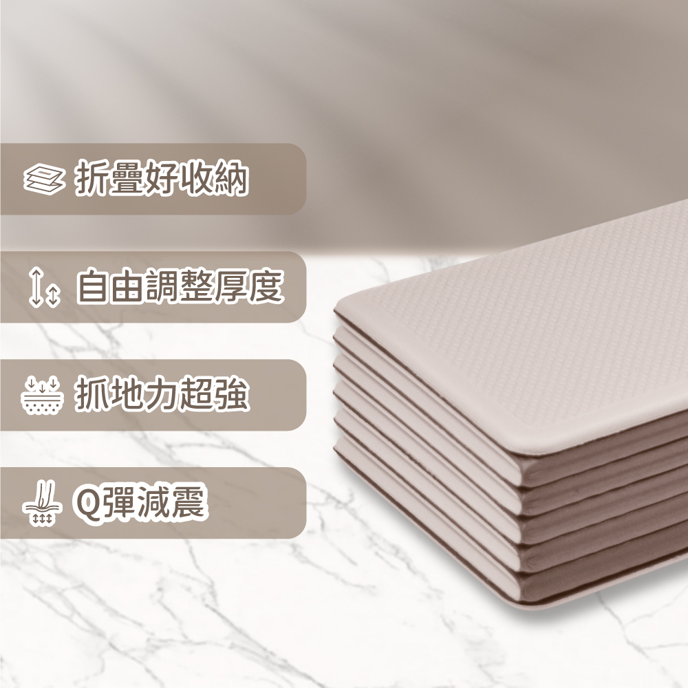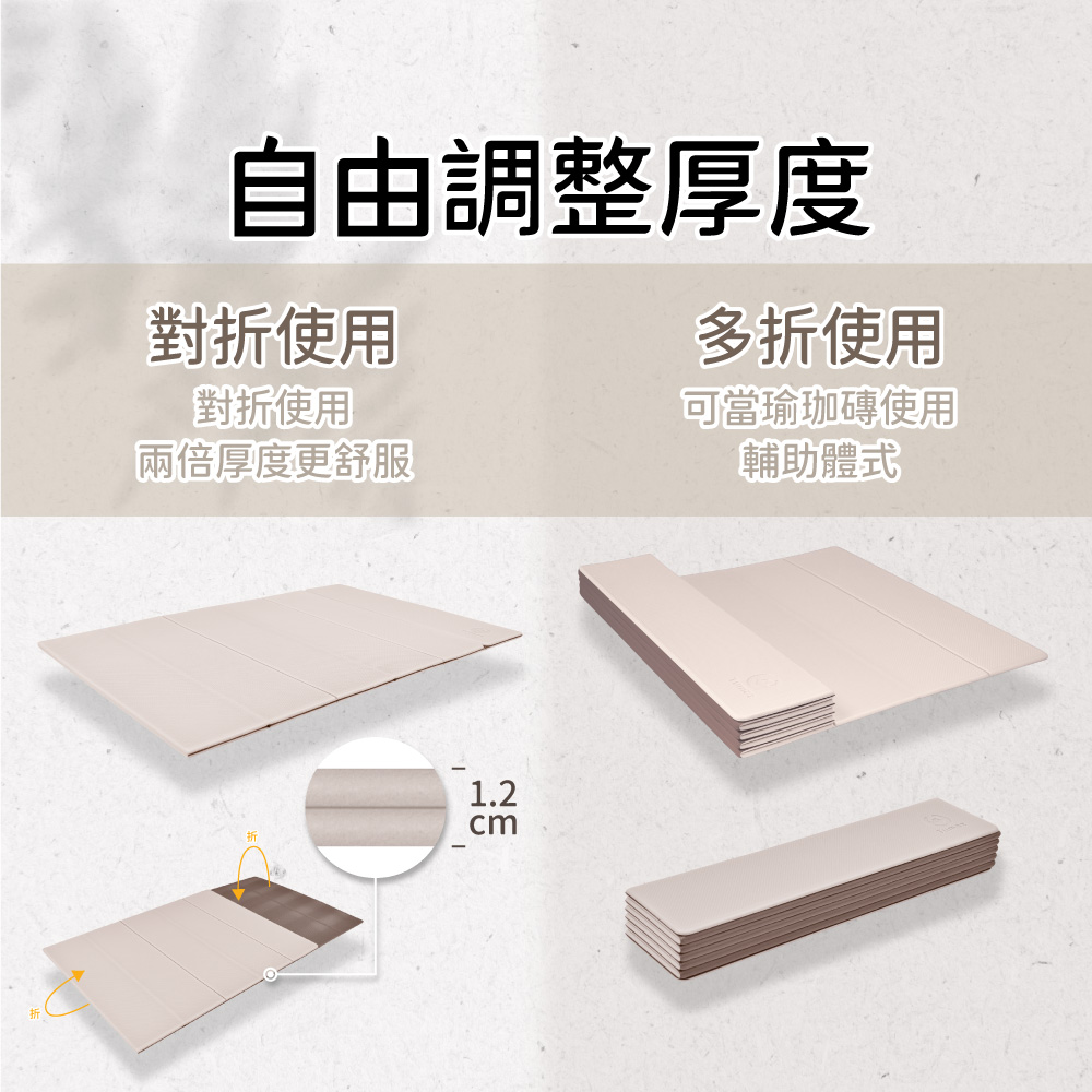 折起來的厚度可做瑜珈磚使用,穩固又方便