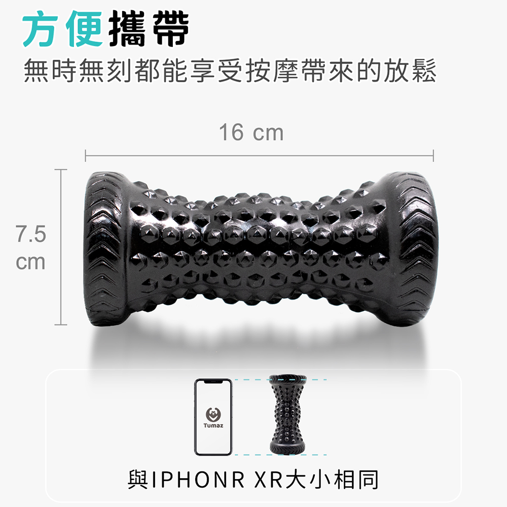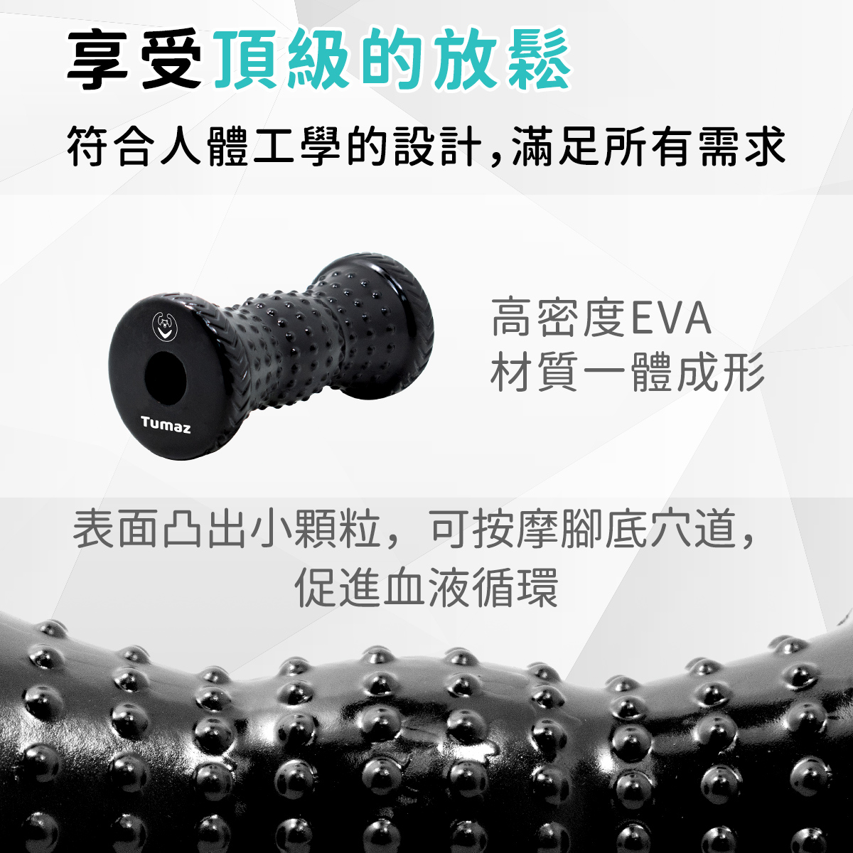 ●Tumaz小型筋肉按摩滾輪外部採用EVA發泡材質,耐用、防滑,可直接水洗
