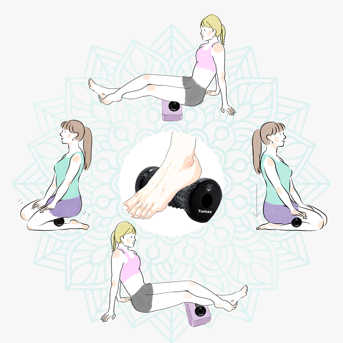 ●腳踏在滾輪上,來回滾動按摩腳底,可以放鬆腳底緊繃的肌肉,同時改善血液循環及緩解痛點。