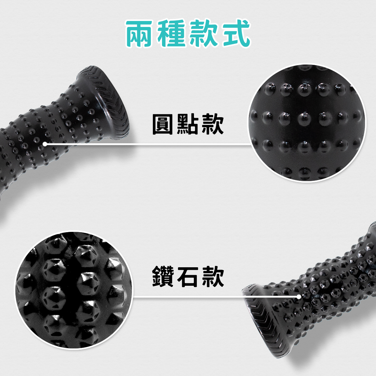 ●表面突起的顆粒,能進行穴道的按摩,配上滾輪後更連肌肉一起舒緩,放鬆筋膜
