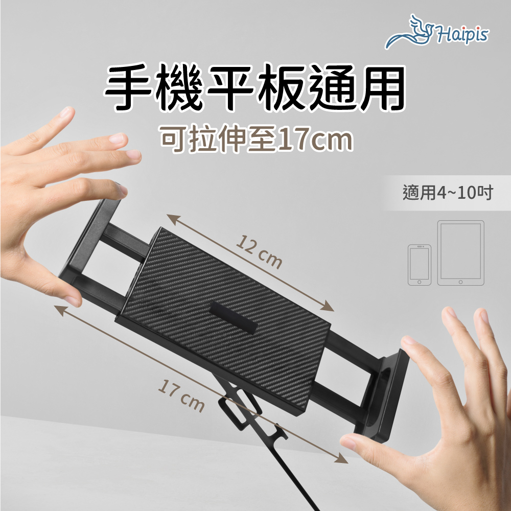單邊夾頭最長可拉申至17cm,手機平板皆可使用