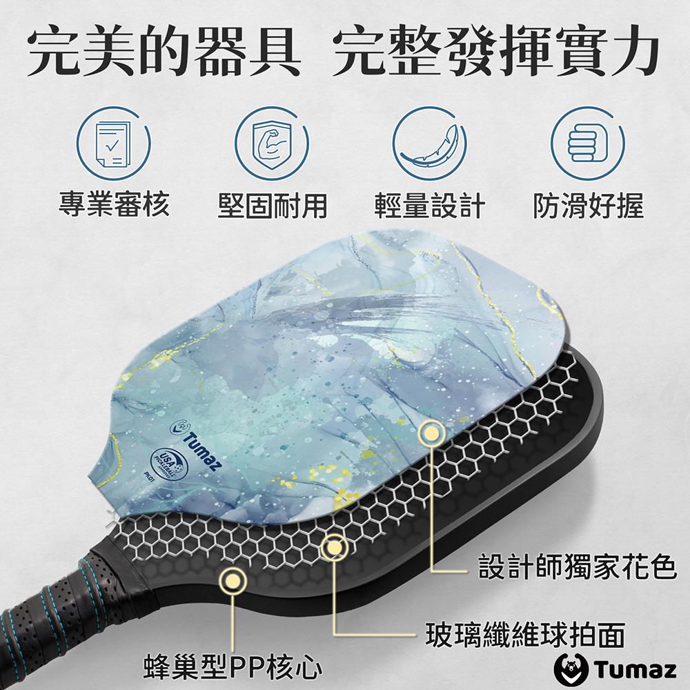 ※ 歡迎至USA Pickleball Equipment官網查詢,點擊”Search Paddles”或”Search Balls”後,在”Search Manufacturer”欄位搜尋”Tumaz”,即可查到球拍與球皆通過認證,為符合職業比賽認可的球具。