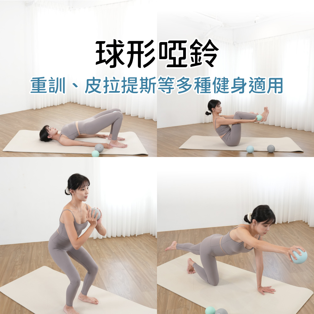 球形外型貼合手掌,握持自然穩定,可靈活運用於重訓、皮拉提斯、核心與平衡訓練。