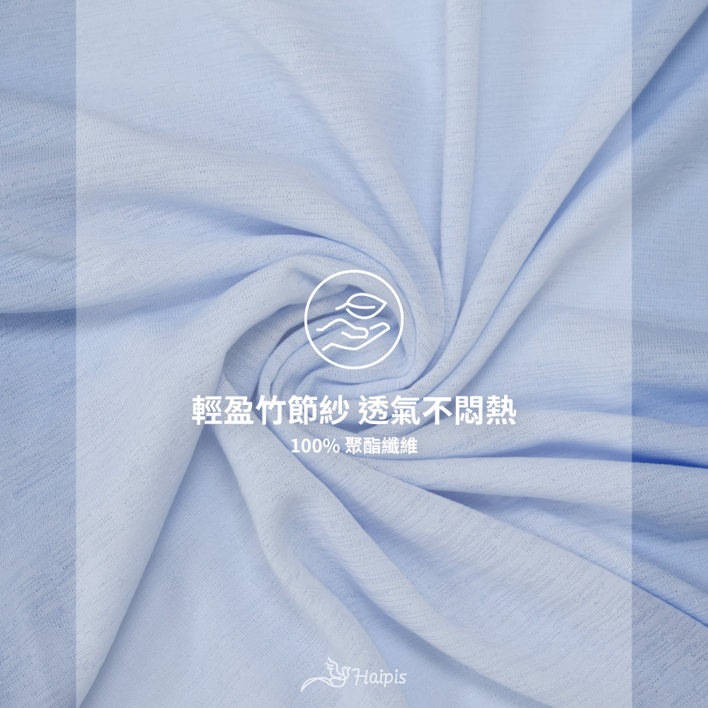 採用 100% 聚酯纖維,竹節紗質感自然清爽,透氣排汗佳,適合運動後外搭。