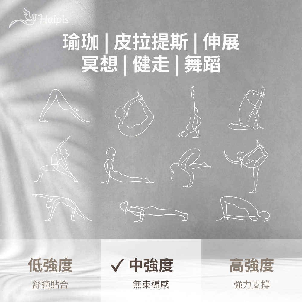 提供適中的支撐力,包覆穩定卻不壓迫,適合瑜珈、皮拉提斯、舞蹈、單車、重訓、飛輪課程與日常通勤,運動與生活都能自在穿著。