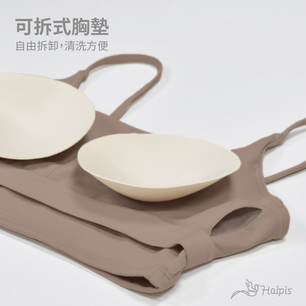 內附可拆卸胸墊,方便依照需求更換或清洗,保持乾爽衛生,同時維持自然立體的胸型。