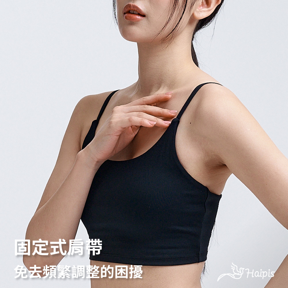 採固定式肩帶,免去頻繁調整的困擾,動作再大也能穩定服貼,專心投入每一次伸展與訓練。