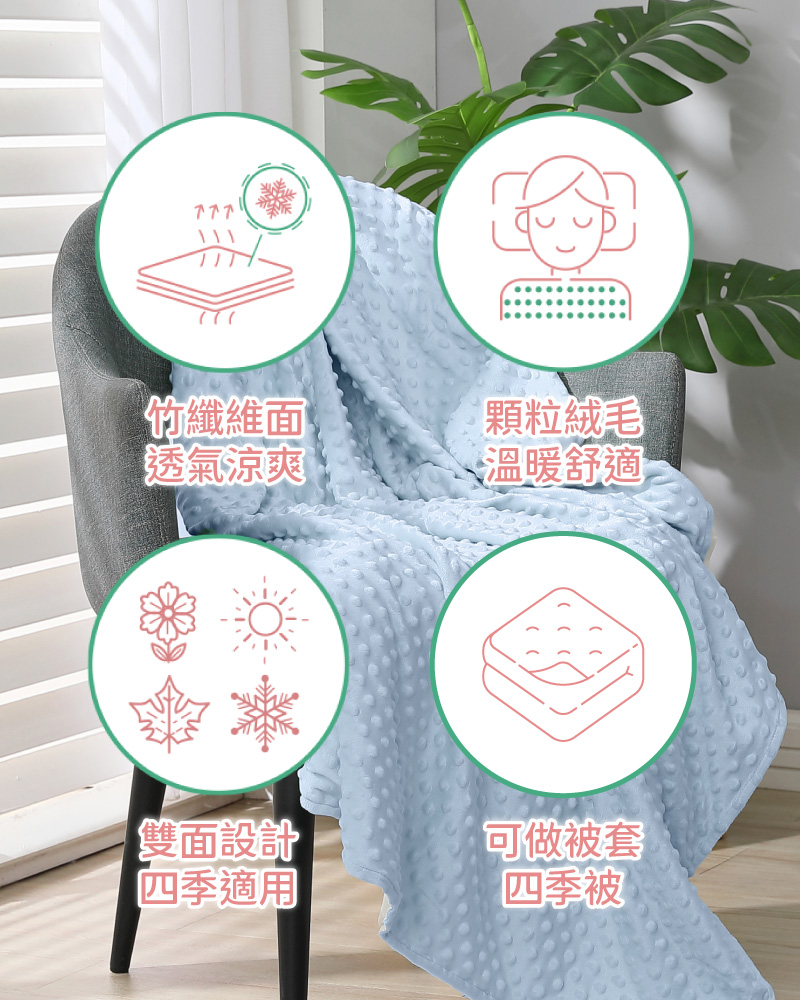 (冬)療癒顆粒絨毛+(春夏秋)透氣竹纖維,適合四季使用
