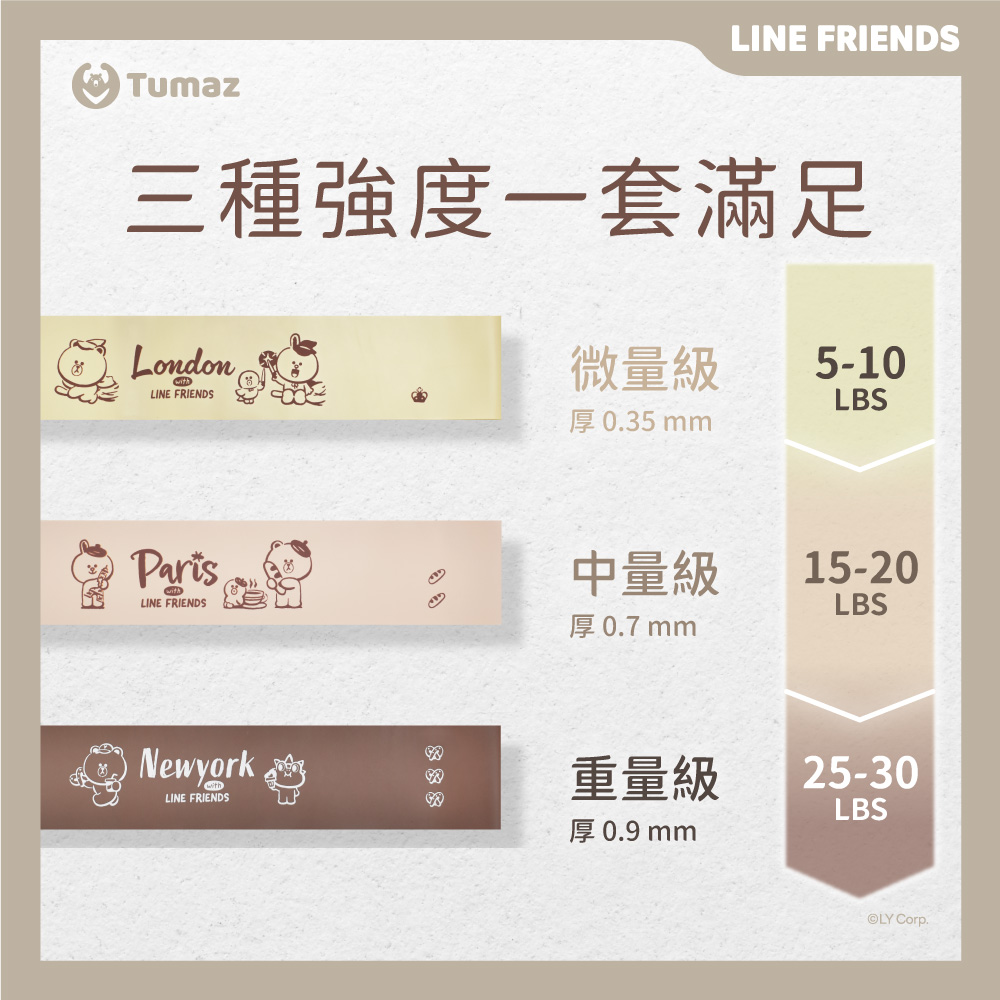 一套3入共3種強度,從入門到進階都適用,可以根據自己的訓練課表選擇、依訓練部分選擇不同強度。