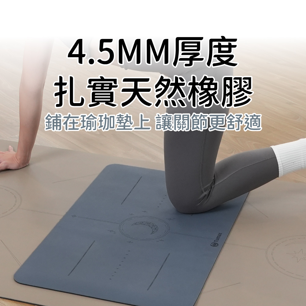 4.5mm 天然橡膠厚度,支撐力扎實,可鋪在瑜珈墊上使用,為手腕、肩膀提供緩衝。