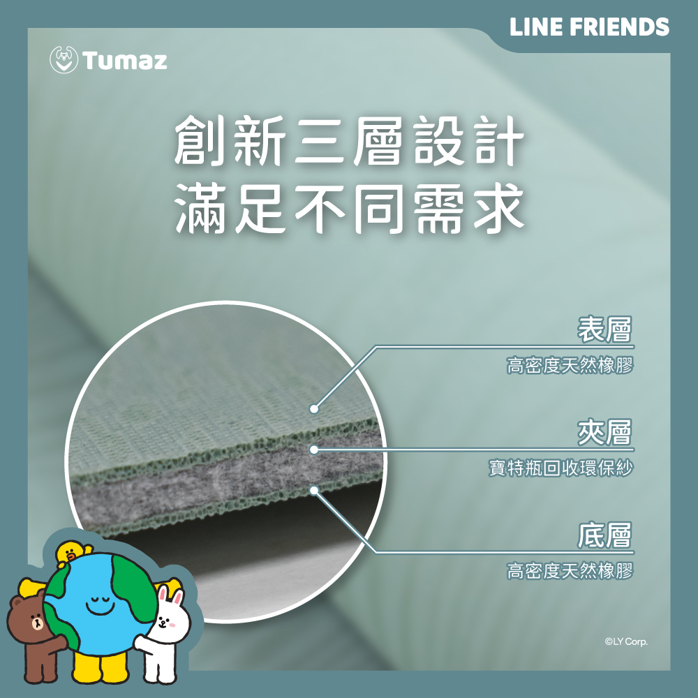 【LINE FRIENDS正版授權】輕量環保天然橡膠瑜珈墊 4.5mm / 台灣製