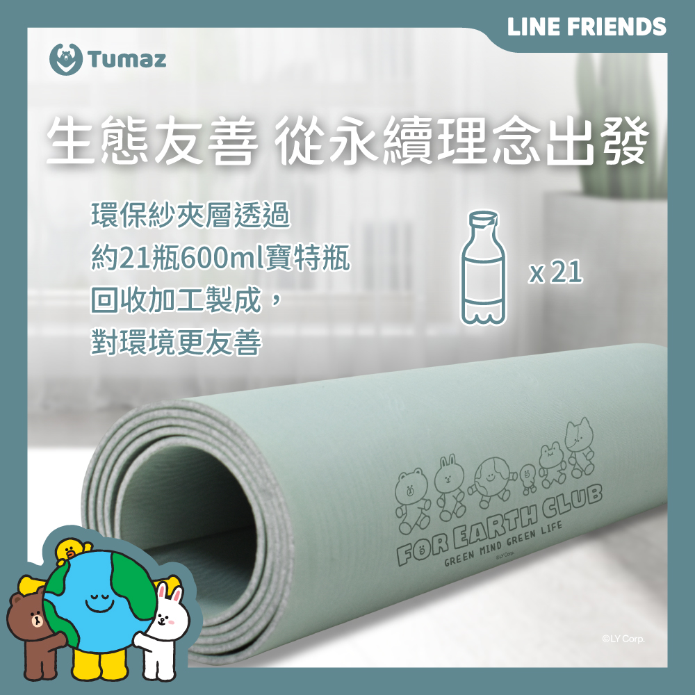 從永續理念出發,環保原料結合環保圖素,可愛低調的設計為瑜珈帶來療癒,跟著LINEFRIENDS明星一起成為綠色大使,與自然同呼吸。
