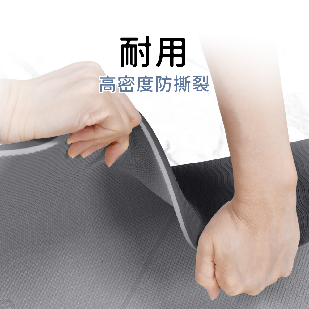 2.TPE墊子不用的時候捲起來用背帶綁好,或者平鋪放置收好。請勿摺疊,否則會出現摺痕,嚴重的話可能導致裂開